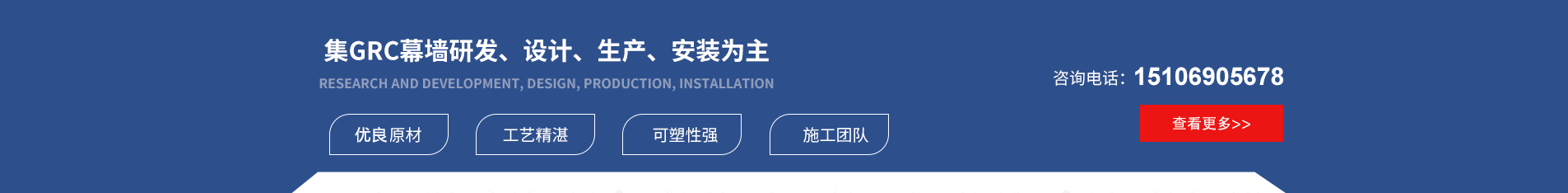 • 是一家集GRC幕墻研發(fā)、設計、生產(chǎn)、安裝為主,融GRG、GRP等新型建筑材料創(chuàng)新應用為一體的技術企業(yè)。